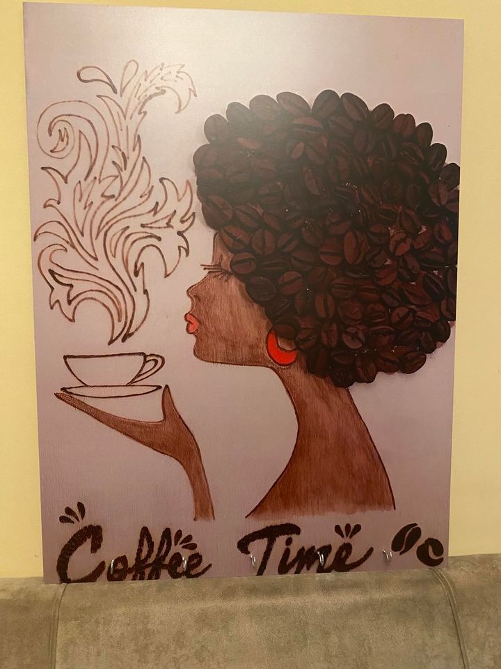 A charming wall art with hooks for hanging your favorite mugs, perfect for your kitchen or dining area.