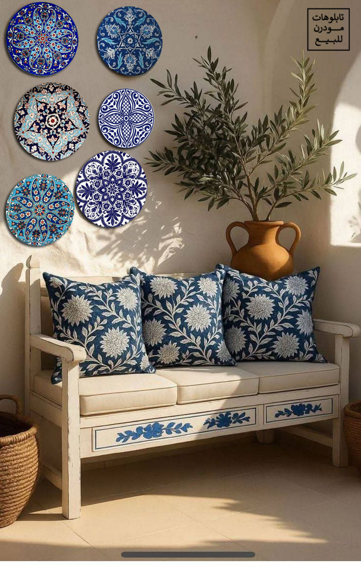 A vibrant collection of blue mandala round wall art pieces, perfect for adding a touch of elegance and cultural charm to living rooms, entrances, balconies, and boho-inspired spaces. The detailed patterns and rich blue tones create a striking visual statement on any wall.